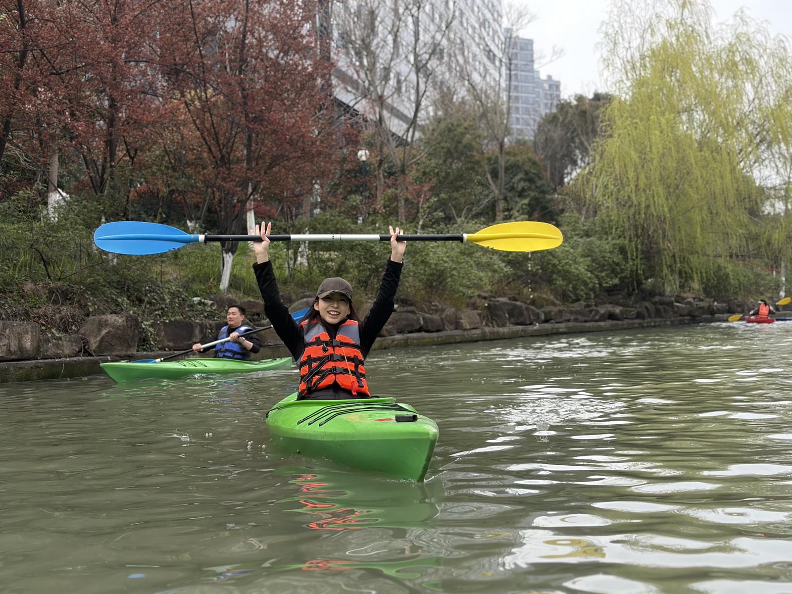 随后,参与者们分批上阵,挥桨击水,泛舟碧波。一叶叶轻舟在河道中轻快穿梭,大家在运动中尽情体验划行乐趣,在沉浸式游览中切身感受引水河“水清岸绿、河畅景美”的丰硕治理成果。“非常感谢四季青街道精心组织本次活动,形式新颖、很接地气。平时工作节奏较块,既能放松身心、强健体魄,又能近距离感受治水护水的显著成效,我们很喜欢,下次还会积极参与。”首次参与活动的企业职工王先生由衷点赞道。