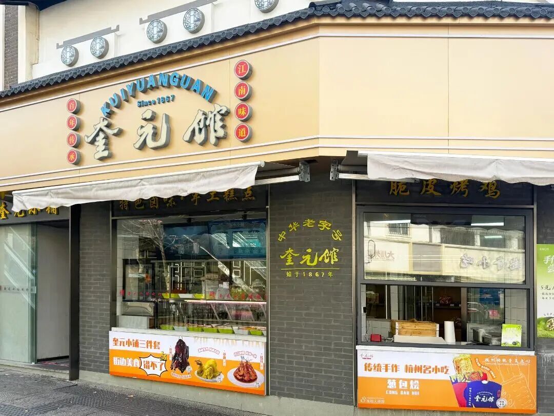 1867年创立,百余年来,奎元馆接待了蔡廷锴、蒋经国、李济深、陈叔通、梅兰芳、竺可桢、盖叫天、周璇、金庸等名人。1945年抗战胜利后,国民党第19路军军长蔡廷锴将军同李济深到奎元馆,留墨“东南独创”四字。金庸三顾题字“杭州奎元馆,面点天下冠”,奎元馆经营的面食品种达百种之多,但最负盛名的要数片儿川面和爆鳝面。片而川配料相传是从宋朝诗人苏东坡在杭州做地方官时所写的“无肉令人瘦,无笋令人俗”之句得到启示而来的。它以新鲜腿肉、时鲜竹笋、绿嫩雪菜作为原料,经厨师烹制,当一碗热气腾腾的片儿川面端上餐时,只见肉红、笋白、菜绿,色泽分明,引人食欲。