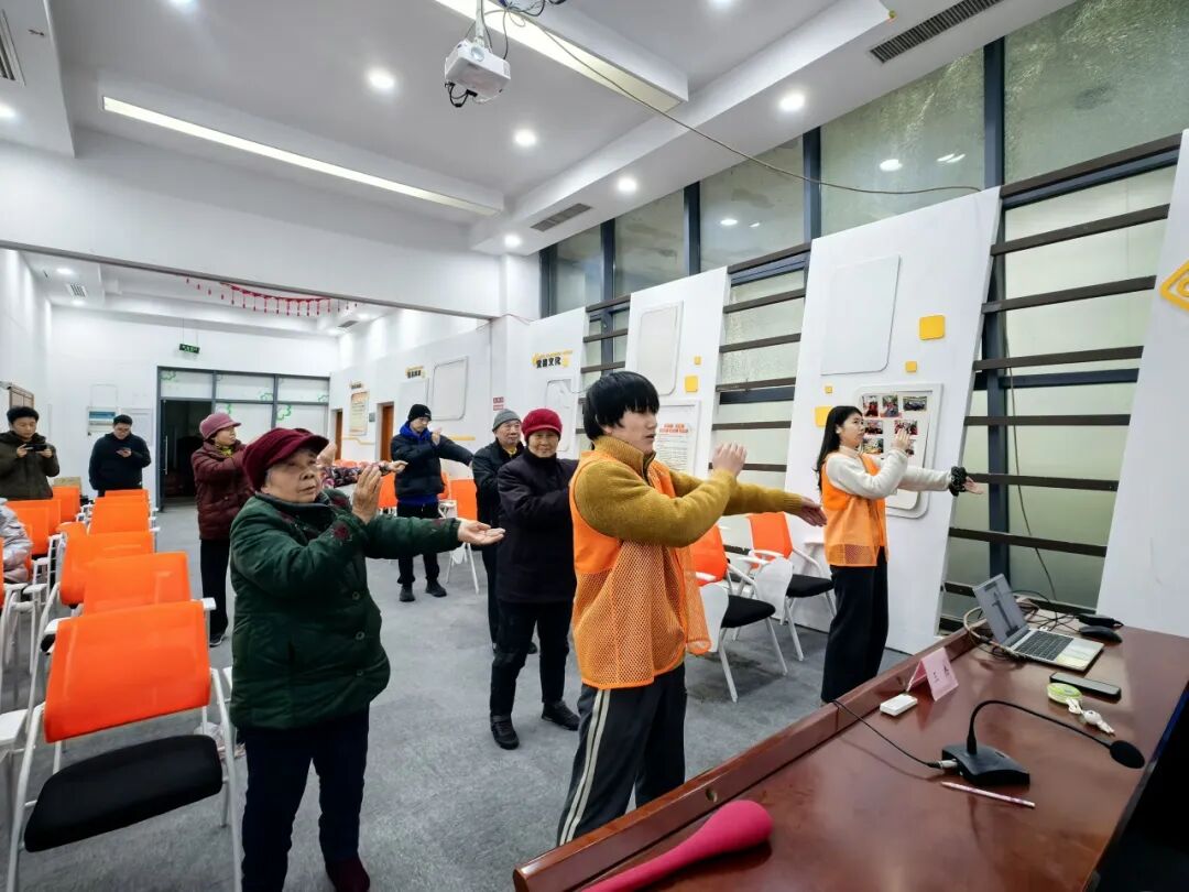 活动当天,老人们在工作人员引导下有序签到、领取经络拍。讲师以通俗语言讲解“拍八虚”原理、核心部位及力度控制要点,结合老年常见健康问题现场答疑。随后带领大家伴着舒缓音乐练习,工作人员与志愿者全程陪护,对动作不协调、记忆较慢的老人一对一帮扶纠正,确保每位老人都能熟练掌握正确方法。
