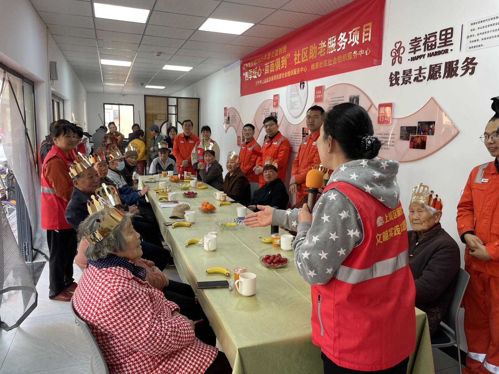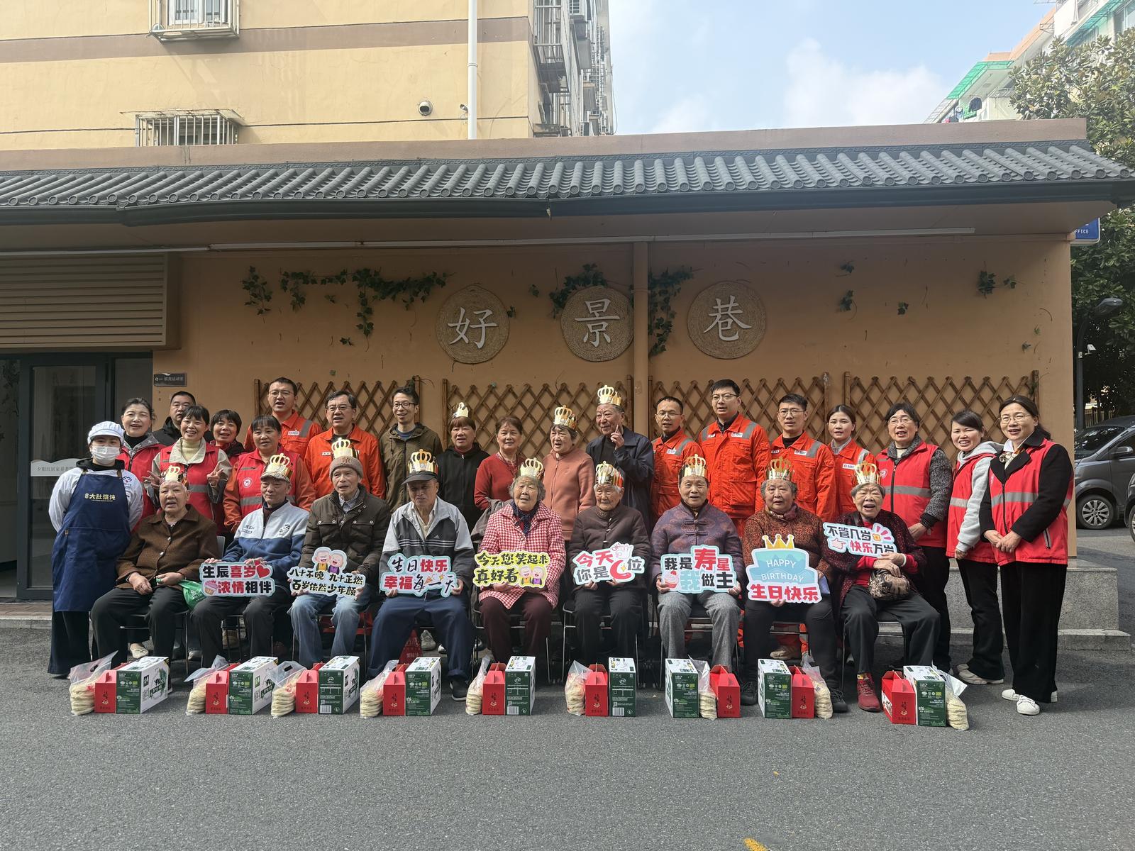 春光明媚,暖意融融。3月25日上午,钱景社区“好景巷”热闹非凡,“幸福小屋”三月集体生日会在此温情启幕。十余位社区老年寿星欢聚一堂,与志愿者们围坐相伴,共庆生辰、共话温情。此次活动依托四季青街道公益创投项目“四季暖心·面面俱到”社区助老服务项目,由钱景社区社会组织服务中心、浙江幸福里基金会联合主办,社区党建联建单位国家管网杭州分公司、新华保险共同参与,用爱心与陪伴为老人们送上一份特殊的春日祝福。