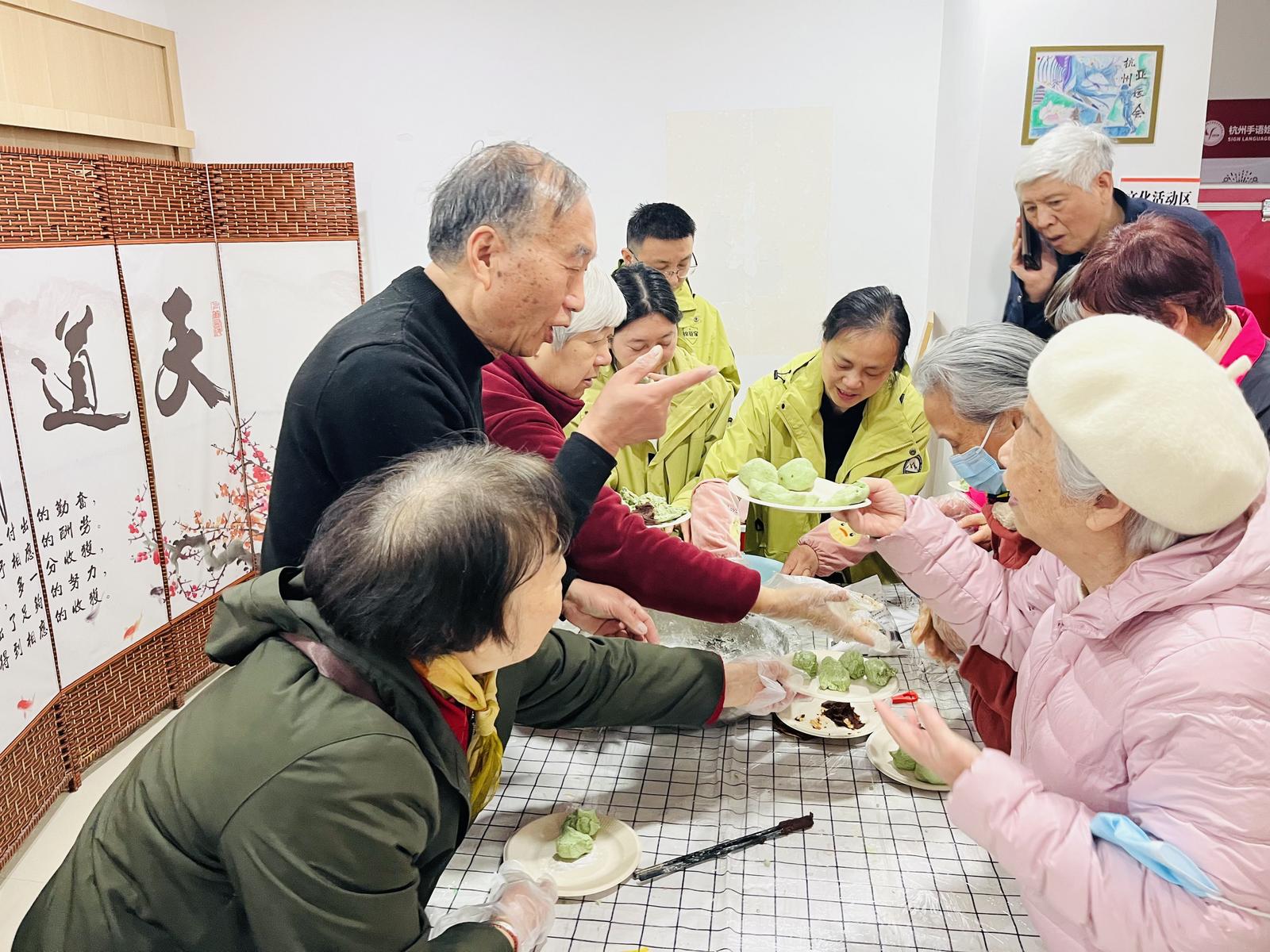 活动现场,工作人员为老人们佩戴生日帽,大家齐唱生日歌、共许心愿、同切蛋糕,甜蜜与幸福萦绕现场。本次生日会环节丰富、趣味十足。老人们在生日背景墙前拍摄“春日留影”,定格幸福瞬间。随后,中医讲师带来健康微讲座,围绕春季养生,从饮食调理、防春困妙招到关节养护技巧,干货满满,并现场互动答疑,为老人们的春季健康保驾护航。 巧手做青团环节中,老人们化身“美食导师”,手把手指导志愿者揉面、包馅,艾草清香混合糯米软糯,大家分工协作、其乐融融,亲手制作的青团可打包带回家,留住春日专属美味。经典老歌猜歌名小游戏,更是将现场气氛推向高潮,老人们踊跃抢答,答对者收获精美小奖品,掌声、笑声此起彼伏。